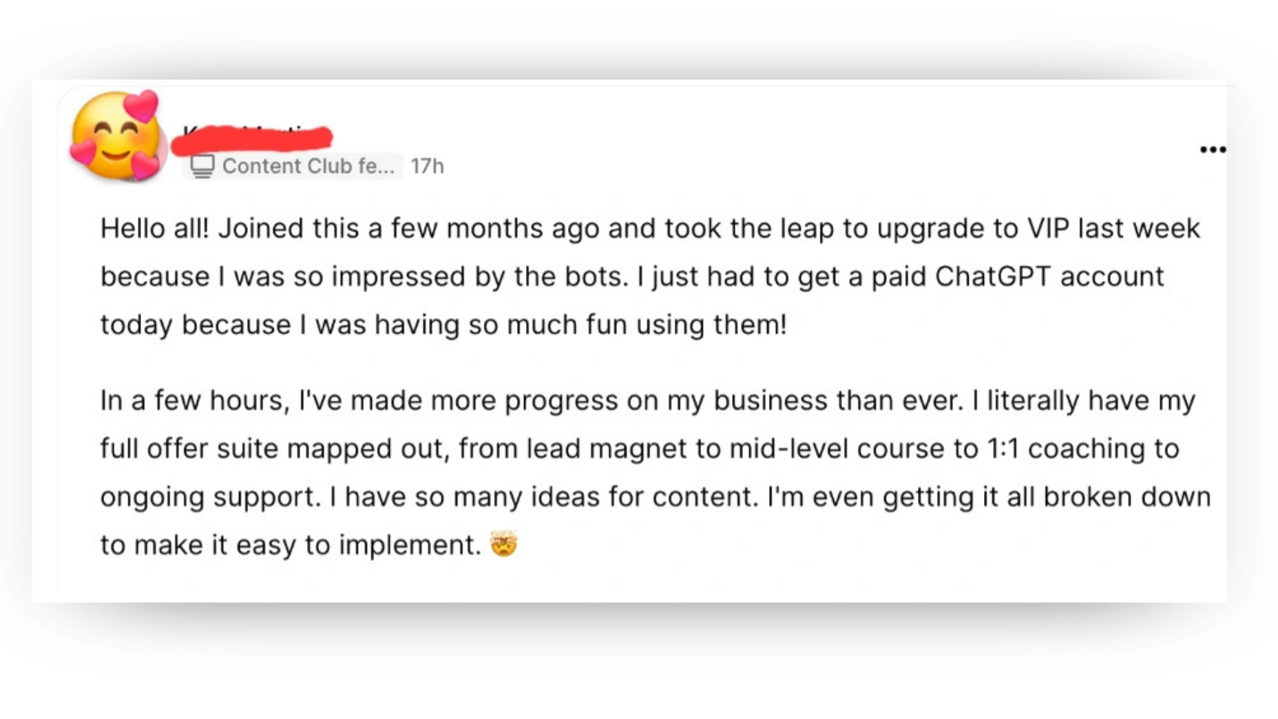 But what I will say is this: The club was not built because I got 'lucky' with a viral post and decided to build a course about it (I'm not another marketing girly).